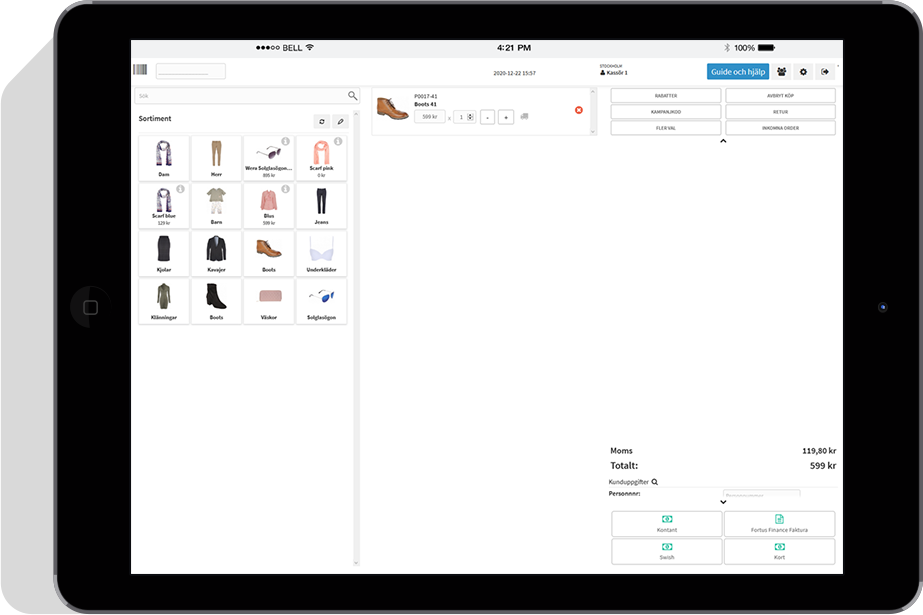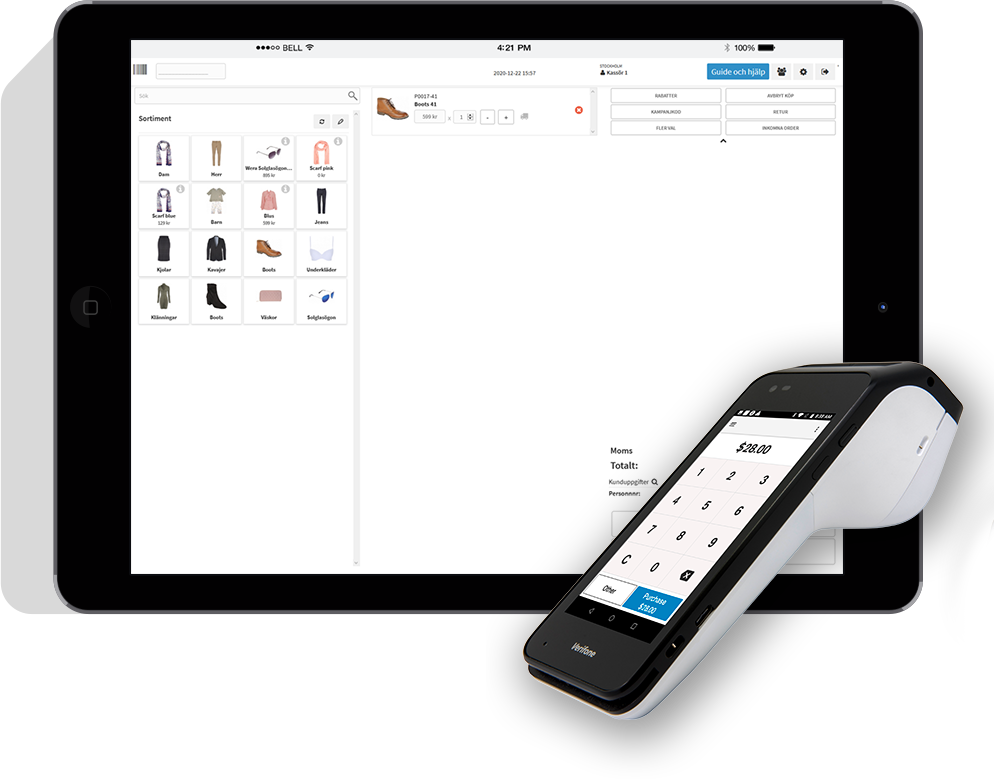 With our terminal, you do everything directly on the screen and when you’re done, you also get a receipt. No machines that take up space on counters are needed. Simple, smooth and discreet.